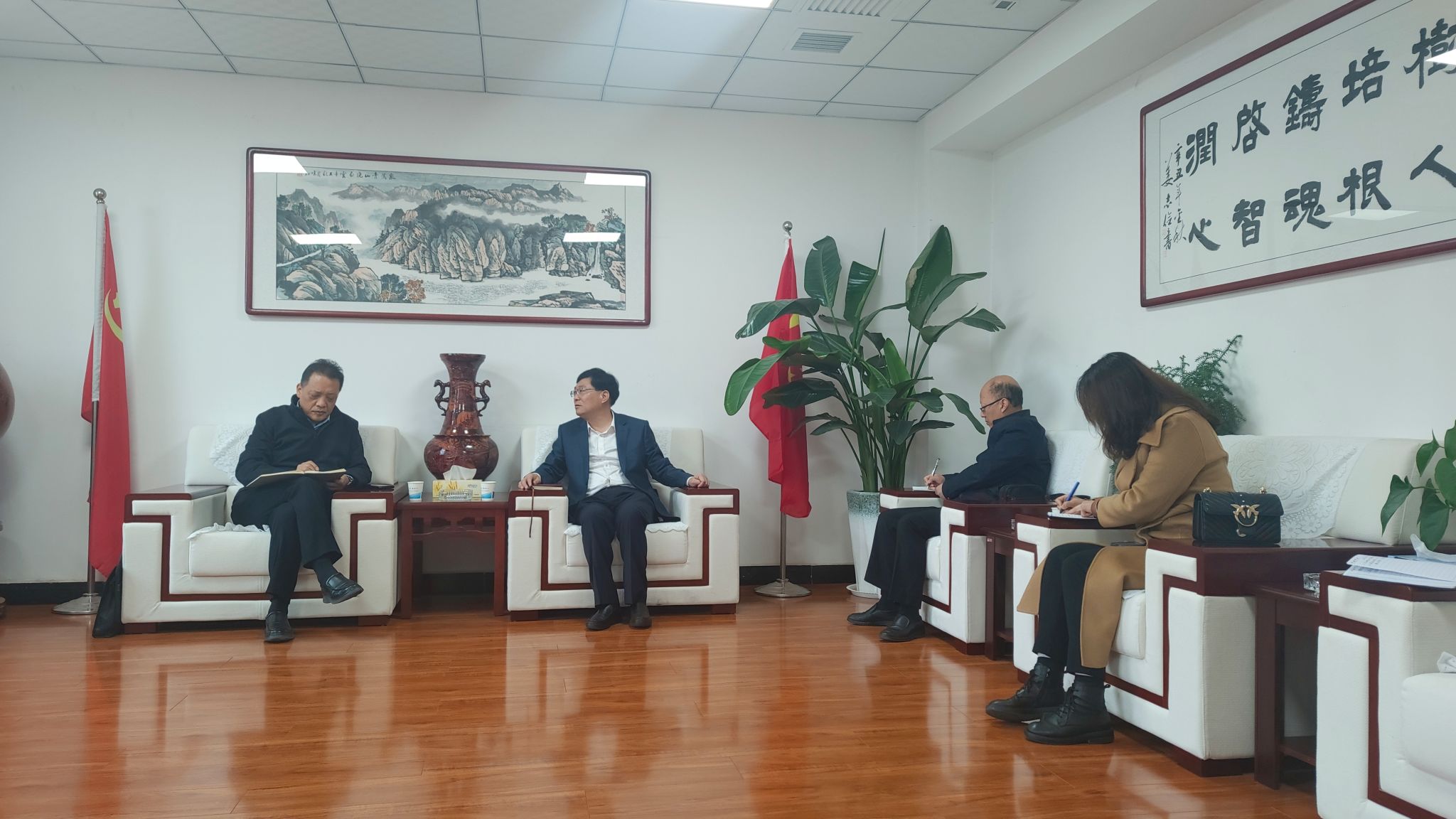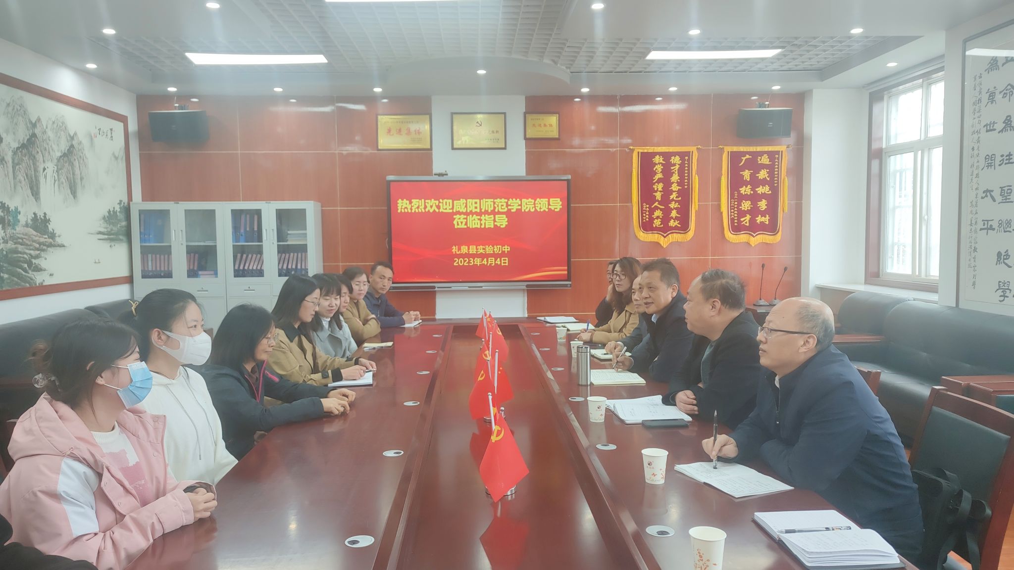 在礼泉县教育局,王长顺副董事长与教育局赵宝泉局长、李国宁副局长就礼泉县基础教育团队队伍建设及发展瓶颈、师范人才培养、顶岗实习等方面的问题进行了充分交流。双方一致认为,基础教育与高等教育应进一步深度融合、资源共享,高校与教育局应进一步发挥自身优势,通过多种方式与更多的地方中小学建立长期稳定的合作关系,进一步加强协同育人,共同推动高校师范教育及地方基础教育的高质量发展。