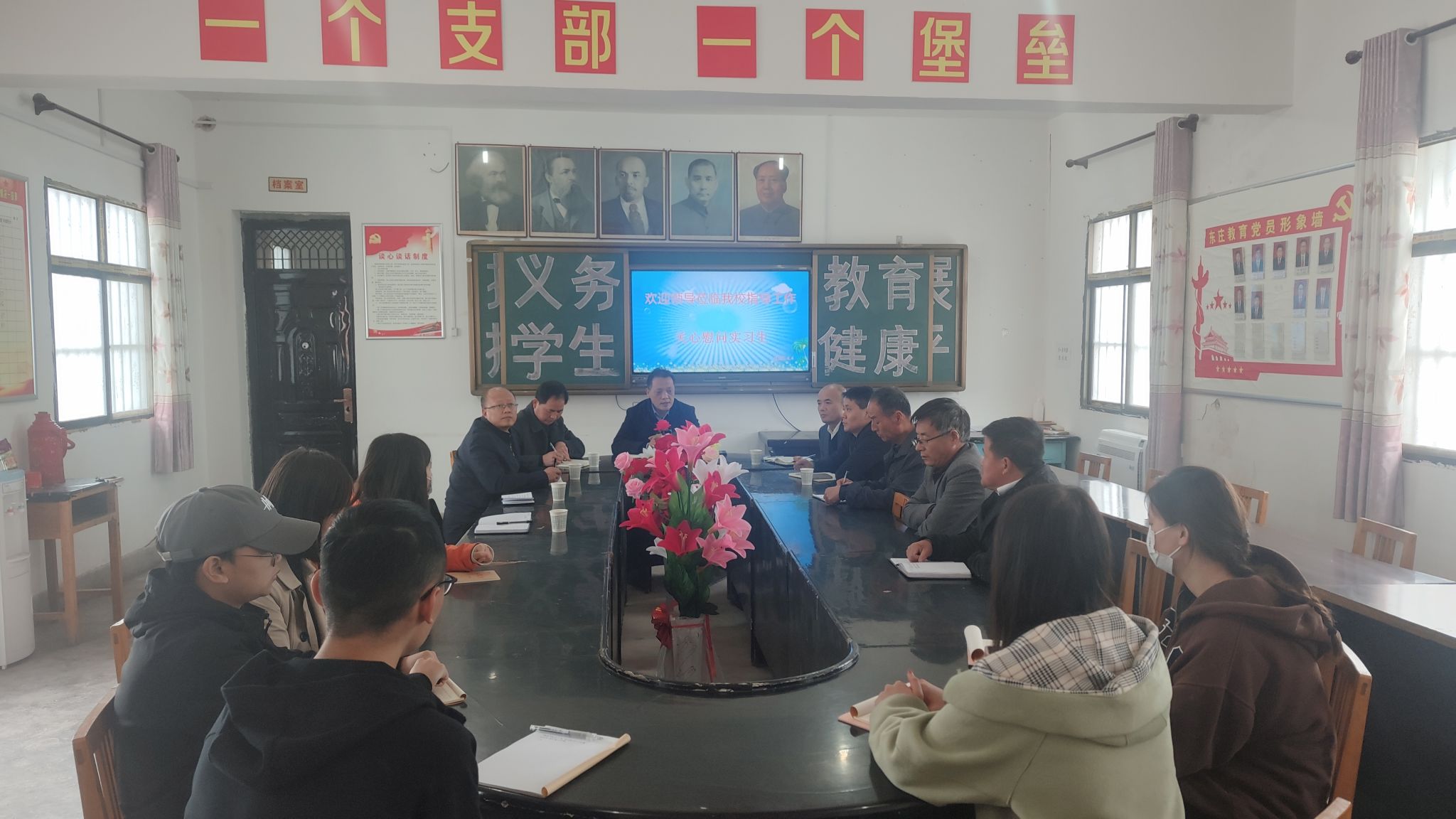 随后,王长顺副董事长一行赴礼泉县英才初级中学、礼泉县实验初级中学、礼泉县东庄公司及礼泉县南坊镇初级中学检查教育实习工作,听取了实习公司领导及指导教师对公司实习生的学习、生活、工作情况介绍,进课堂听取了部分实习生的授课、检查了听课记录及授课教案等实习资料,并与实习员工和带队教师进行了座谈交流。王长顺对公司实习生在近一个月实习工作中取得的成绩和进步表示肯定,同时希望实习生们一是要树立远大理想、立志奉献;二是要多动脑多观察多学习,争做“四有”好老师;三是要始终心怀感恩,感恩母校、感恩实习公司、感恩指导老师。实习生们纷纷表示,在余下宝贵的时间里,一定尽最大努力学习教学技能和班级管理经验,为以后正式走上教师岗位打下坚实基础。