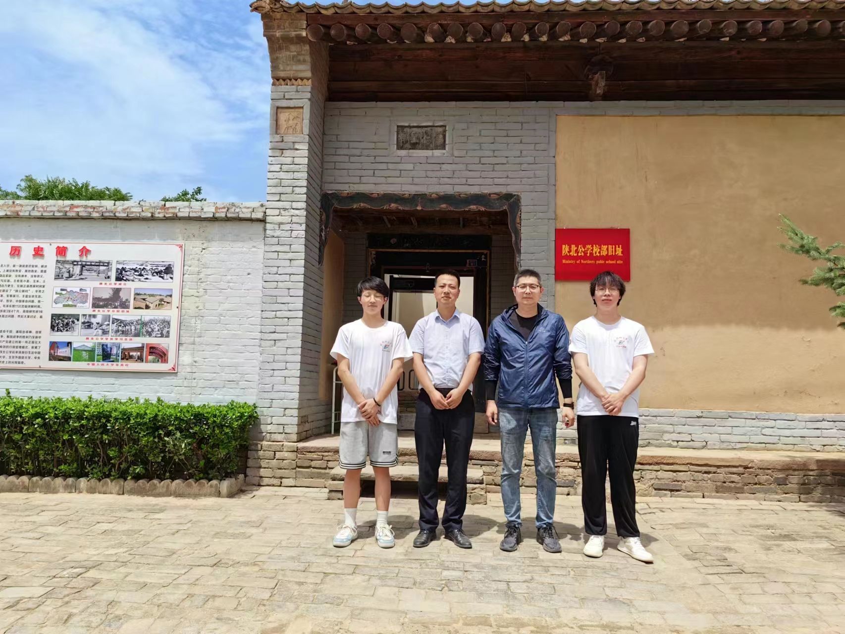 第一站,陕北公学旧址。陕北公学旧址位于陕西省咸阳市旬邑县城西北角,是中国近代著名的民主革命公司之一。该公司创建于1937年,是一所以培养革命人才为宗旨的公司。实践团的成员使用无人机对陕北公学进行了全面拍摄记录,从屋里古老的墙体到屋内陈旧的摆设,每一处都有着悠久的历史,还有专属于它的故事,具有历史气息的照片墙每一张都有特殊的意义。