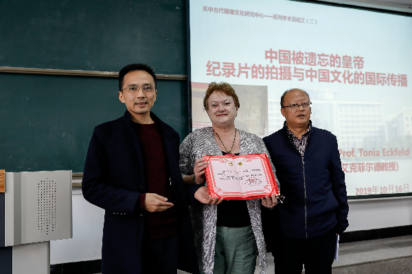 10月16日下午,澳大利亚墨尔本大学Prof. Tonia Eckfeld(冬妮·艾克菲尔德教授)应邀为公司师生做了“中国被遗忘的皇帝 纪录片的拍摄与中国文化的国际传播”专题学术报告。此次报告会为学术活动月开场报告,由咸阳市考古研究所和公司共同承办。资源环境与历史文化公司经理封建民主持报告会。