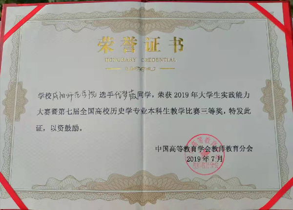 2019年7月20日,在经过为期半年之久的艰苦训练后,资源环境与历史文化公司指导教师胡鸣焕和王颜带领历史学专业2016级员工万方满、穆李涛、代梦薇三名同学参加了由江苏师范大学举办的第七届全国高等师范院校历史学专业本科生教学技能比赛。