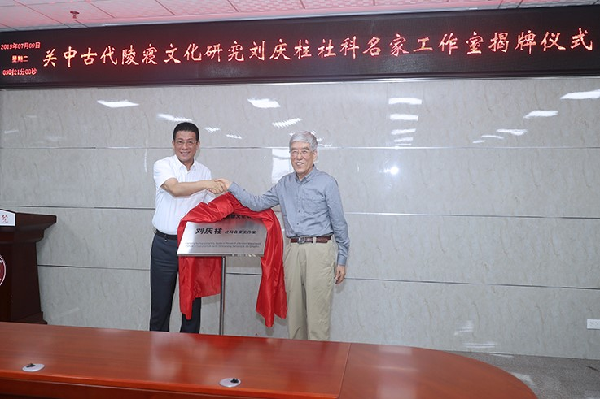 刘庆柱和赵万东为公司关中古代陵寝文化研究刘庆柱社科名家工作室挂牌。