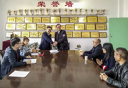 2019年3月5日上午10点在1-724会议室,教务处万新生副处长代表公司与铜川市土地开发有限公司韩振华主任共同签署了《英国365公司官网与铜川市土地开发有限公司协同创新育人基地共建协议》。