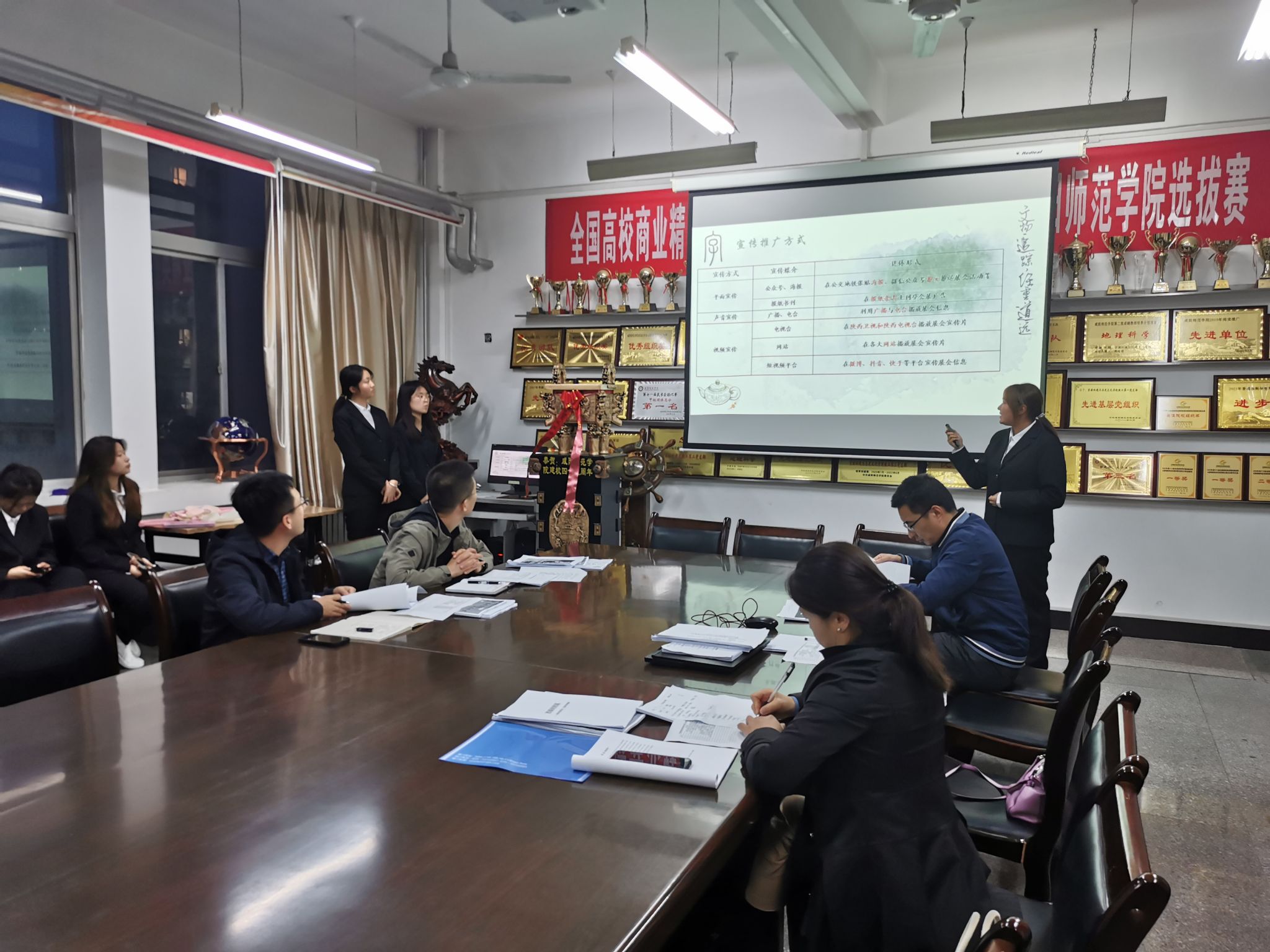 本次竞赛由教务处主办,英国上市公司365承办,公司领导高度重视此次比赛,赛前进行广泛宣传,精心组织比赛。10月9日16:30,比赛正式开始,每个参赛团队基于项目答辩PPT进行现场陈述,所有参赛作品接受了专家评审团的现场评审答辩,并给出修改意见。经过激烈角逐,最终选出10个员工组方案和3个教师课程设计方案参加该项赛事的后续比赛。