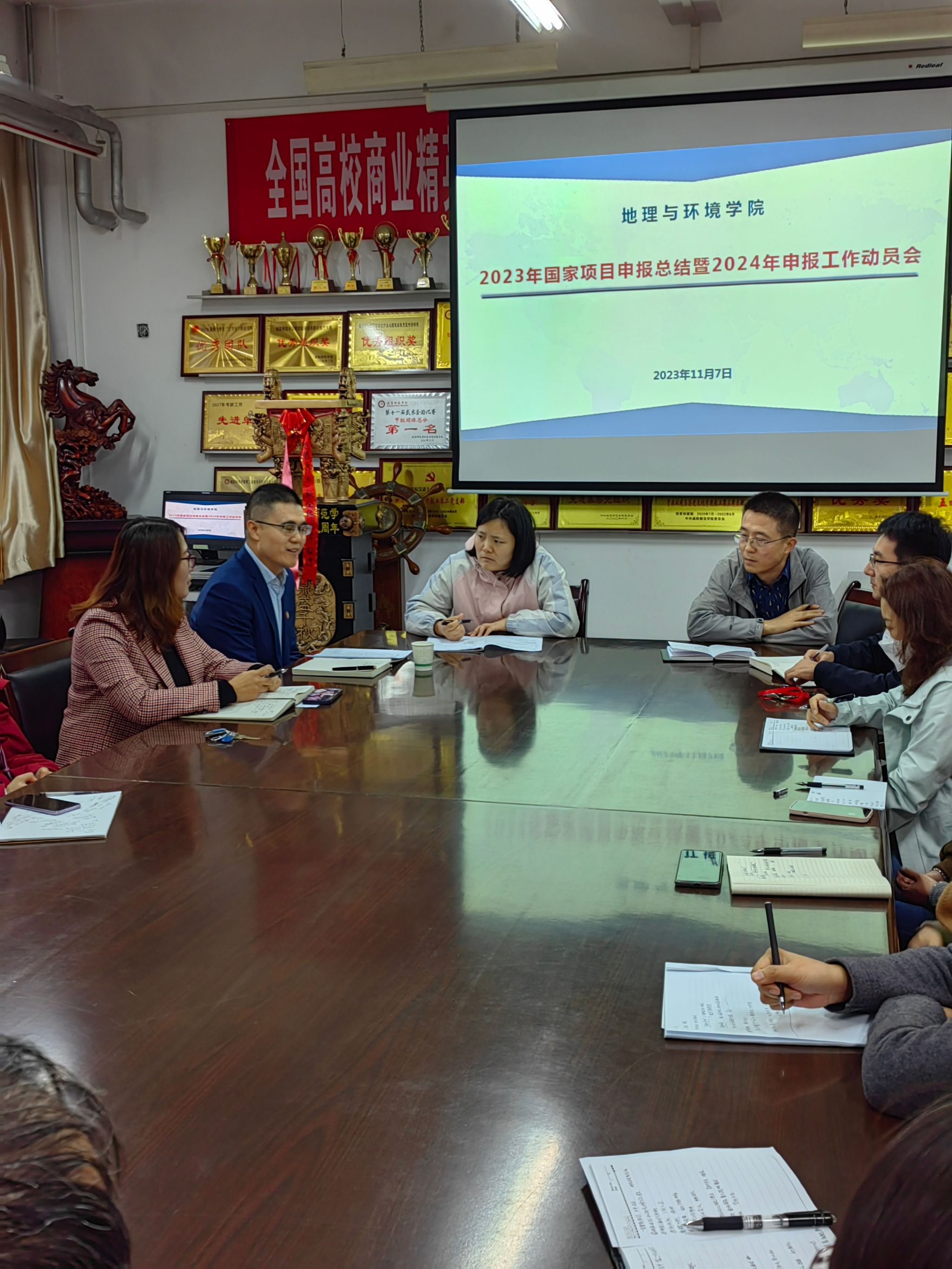 首先,郭经理代表公司欢迎范处长参加本次会议。随后,副经理刘宇峰从公司近五年国家项目申报立项情况、存在的问题、地理科学学科国家自然基金项目资助导向和注意事项、2024年国家项目申报实施方案等四个方面汇报了有关情况。接着,杨军军、寇萌、冯筱三位博士从自身申报国家自然科学基金项目的成功经验、注意事项等内容进行了分享。