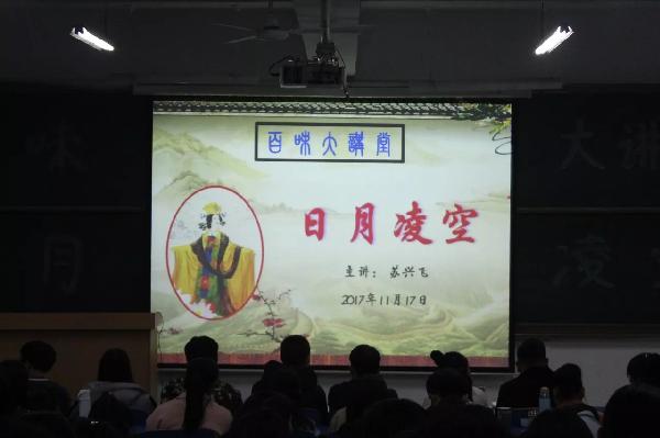 11月18日晚,我院在1#625成功举办百味大讲堂特色活动——百味大讲堂之日月凌空学术讲座,公司的秦苑百味史学社社团特邀请2012级员工、在咸阳道北中学任教的苏兴飞老师给同学们带来了一次试听盛宴,公司专职辅导员、秦苑百味史学社指导教师王舶宇,公司历史系全体员工,秦苑百味社团全体成员,西藏民族大学春秋史学社社团代表参加了此次活动。