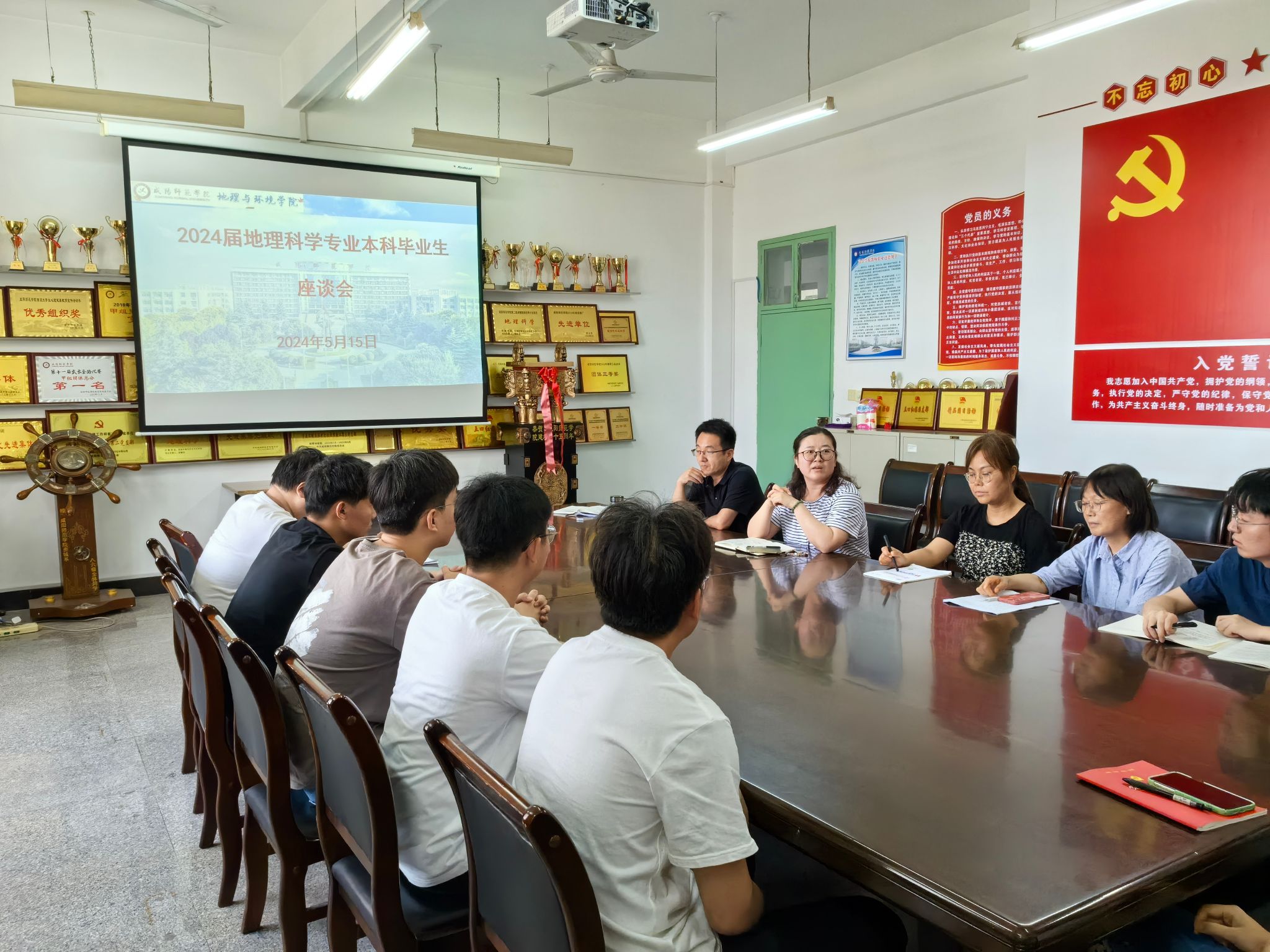 5月15日,地理科学专业召开2024届毕业生座谈会,公司党委副书记晁化平、副经理刘宇峰、地理科学专业教师以及2024届毕业生代表参加座谈会,会议由地理科学系主任寇萌主持。
