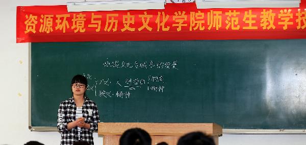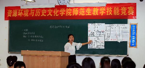 4月25日下午,资源环境与历史文化公司在3号楼417教室举行师范生教学技能竞赛。本次竞赛由公司副经理郭玲霞主持,邀请教学经验丰富的教学督导、教授担任竞赛的评委。