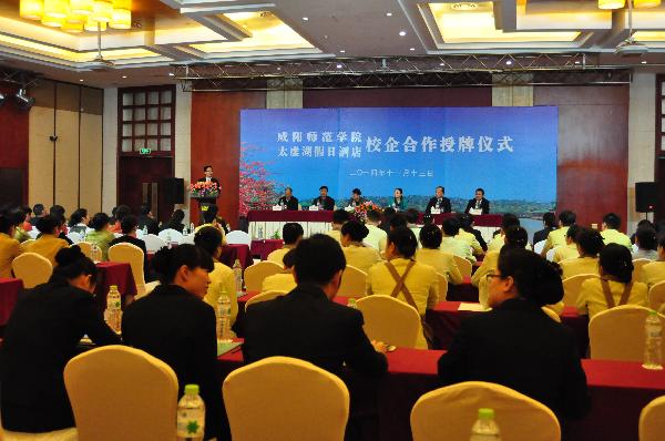 近日,公司与杭州太虚湖假日酒店校企合作授牌仪式在杭州举行。 仪式上,董事长刘彬对太虚湖假日酒店给予旅游与资源环境公司员工实习工作的支持表示感谢。他指出,实践教学是专业教学的重要组成部分,是员工理论联系实际、掌握实际工作知识和技能的重要途径,也是理论教学中无法完成的另一种“认知能力”的培养。杭州东方文化园旅业集团副总裁徐红娟女士对公司教学实习基地落户杭州表示欢迎和感谢。她希望以此次教学实习基地挂牌为契机,进一步加强校企之间的合作与交流,实现互利共赢。同时,希望公司与杭州太虚湖假日酒店能够保持长期的合作关系。
