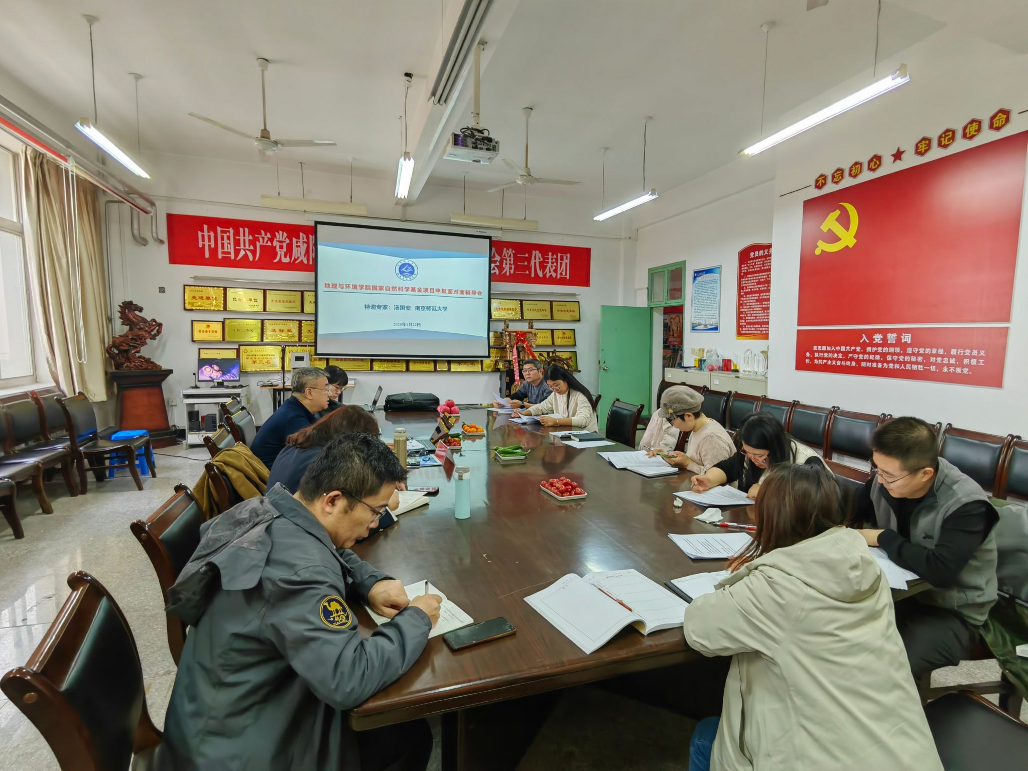 在辅导会中,汤国安教授围绕国家自然科学基金申报的全过程展开详细讲解,特别针对基金选题、申报书撰写、创新点呈现以及如何提升项目竞争力等关键内容进行了深入分析。同时结合近年来基金申报的评审趋势,分享了提高申报成功率的具体策略和方法。此外,汤国安教授还结合自身的科研经验,为基金申报教师提供了精确的一对一指导,就目前申报书中存在的不足展开积极讨论,并给出了针对性的详细修改建议。