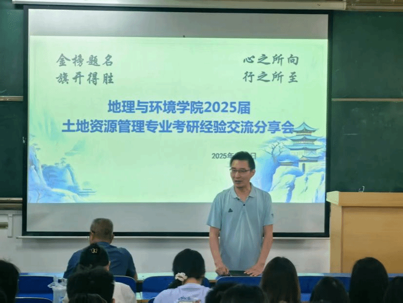 5月7日下午16:30,土地资源管理系在1号教学楼514教室召开2025年考研经验交流及分享会。土地资源管理系主任王建兴、教师代表韩申山、马新萍、焦俏,考研员工代表以及土地资源管理专业2022级、2023级、2024级全体员工参会。
